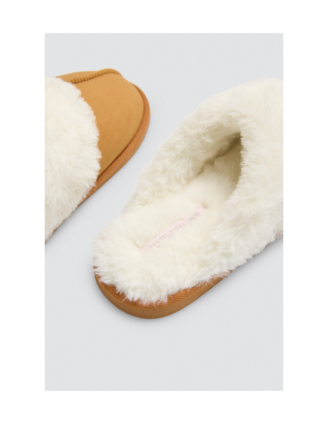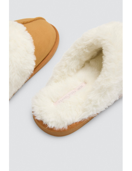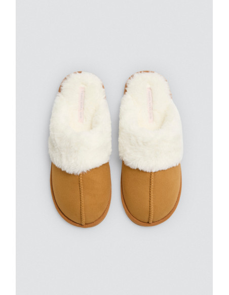Estas zapatillas destalonadas de Ysabel Mora están confeccionadas en tejido efecto ante con forro de peluche extra suave, ideales para quienes buscan comodidad sin renunciar al estilo. Su diseño incorpora un delicado collarín de pelo y una costura decorativa en el empeine que aporta un toque de distinción.
